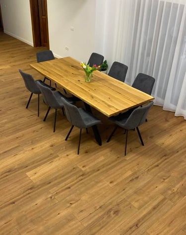 Crafted from premium solid oak, this table showcases the natural beauty of real wood — rich grain patterns, warm tones, and exceptional durability. Built to last for generations, it combines timeless design with strength and stability, making it the perfect centerpiece for any dining or living space